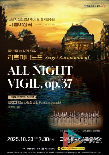 뉴스팍 배상미 기자 | 고양특례시는 문화예술의 발전을 선도하는 고양시립합창단이 오는 10월 23일 오후 7시 30분, 고양아람누리 아람음악당에서 제81회 정기연주회 ‘가을 야상곡 Autumn Nocturne’을 개최한다고 밝혔다.