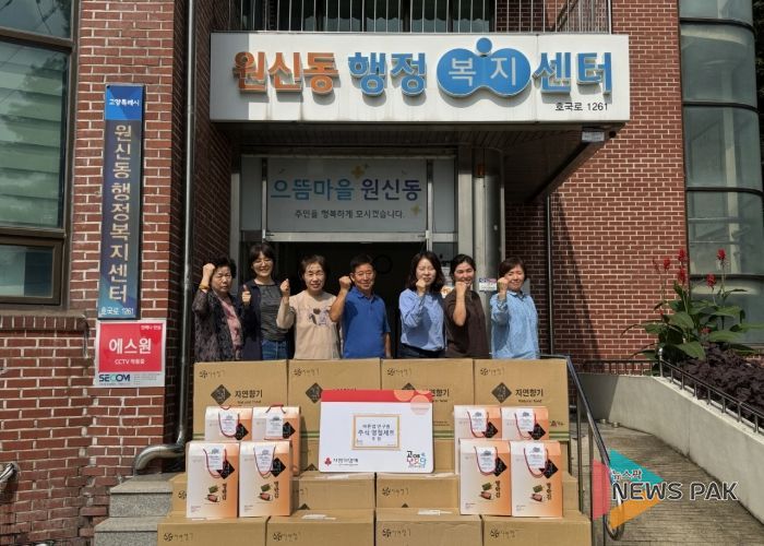 윤정원 원신동장은 “올여름 기록적인 폭염 속에서도 묵묵히 일상을 이어오신 이웃들께 이번 명절 선물이 작은 위로와 응원이 되길 바란다.”며 “앞으로도 다양한 나눔 활동으로 따뜻한 지역사회를 만들겠다.”고 전했다.