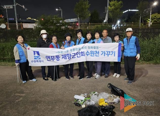 뉴스팍 배상미 기자 | 수원시 장안구 연무동은 지난 27일, 재향군인회와 함께 지난 6월부터 9월까지 3개월 간 진행한 ‘2025 수원천가꾸기 봉사활동’을 성황리에 마쳤다.