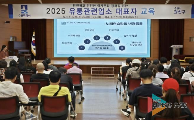 뉴스팍 배상미 기자 | 수원시 권선구는 지난 9월 29일부터 30일까지 이틀간 구청 대회의실에서 ‘2025년 유통관련업소 대표자 교육’을 실시했다.