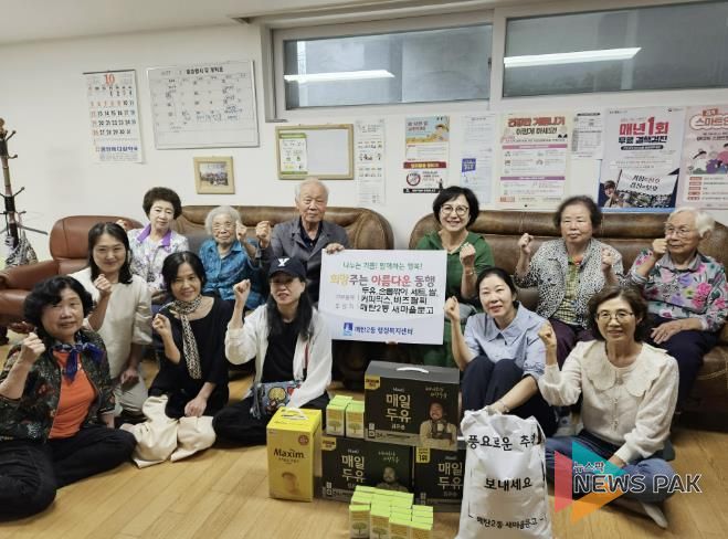 뉴스팍 배상미 기자 | 수원시 영통구 매탄2동 새마을문고은 지난 29일, 추석을 맞아 관내 e편한세상 경로당에 두유, 손톱깎이 세트, 백미 10kg, 커피믹스, 비즈팔찌를 기부했다.