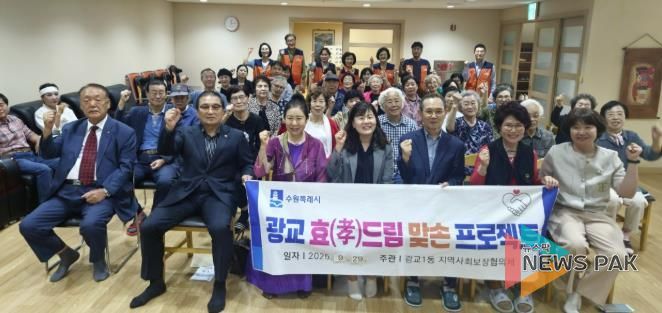뉴스팍 배상미 기자 | 수원시 영통구 광교1동과 광교1동 지역사회보장협의체는 지난 9월 29일, 광교자연앤힐스테이트 경로당(회장 정재수)에서 ‘효드림 맞손 프로젝트’ 제10번째 협약식을 열고, 지역 어르신들을 위한 돌봄 공동체 활동을 한층 강화해 나가기로 했다.