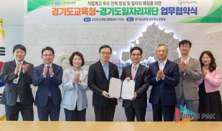 뉴스팍 배상미 기자 | 경기도교육청이 30일 남부청사에서 경기도일자리재단과 도내 직업계고 학생의 성공적 사회 진출 및 일자리 창출을 위한 업무 협약을 체결했다.