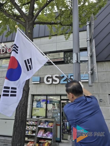뉴스팍 배상미 기자 | 수원시 팔달구 화서1동 새마을지도자협의회는 지난 2025년 9월 29일 다가오는 국군의날(10.1.), 개천절(10.3.)과 한글날(10.9.)을 맞아 화서1동 주요 도로변에서 '나라 사랑 태극기 달기 운동'을 전개했다.