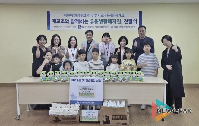 뉴스팍 배상미 기자 | 수원시 팔달구 매교동 행정복지센터에서는 지난 9월 30일 매교초등학교와 함께 ‘유용생활폐자원 전달식’을 진행했다.