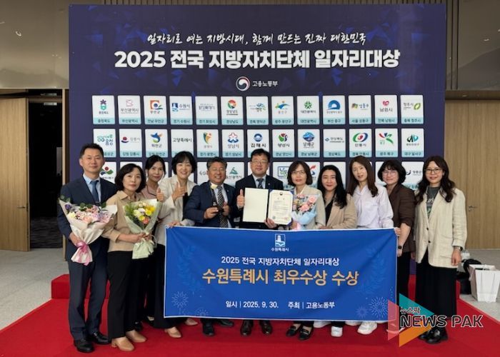 뉴스팍 배상미 기자 | 수원특례시가 고용노동부 주관 ‘2025년 전국지방자치단체 일자리 대상’ 지역일자리 목표 공시제 부문에서 최우수상(고용노동부장관상)을 받았다.