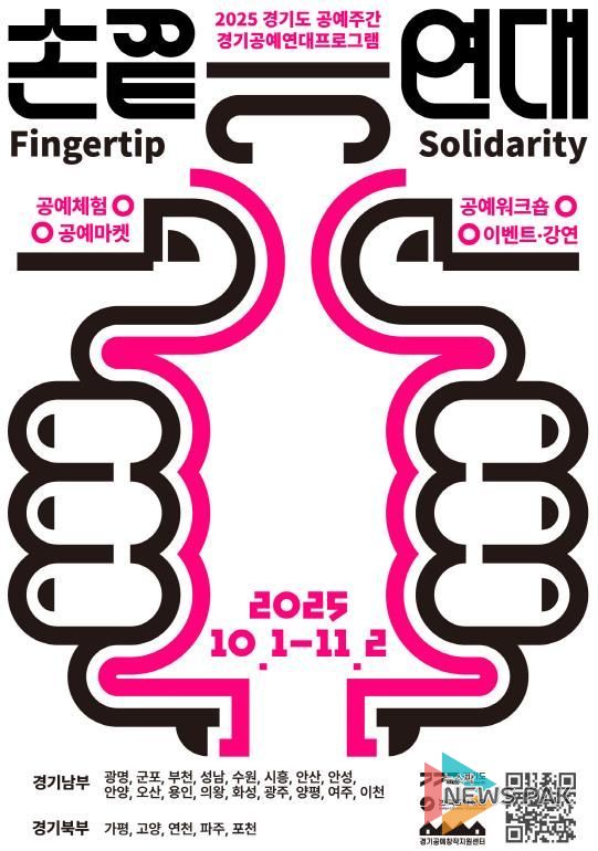 뉴스팍 배상미 기자 | 경기도와 한국도자재단이 10월 1일부터 11월 2일까지 한 달간 ‘2025 경기도 공예주간’을 개최한다. 이번 행사는 지역별로 편중된 공예 활동을 해소하고 경기도 전역으로 균형 있게 공예문화를 확산하기 위해 마련됐다. 전시, 체험, 교육, 학술, 네트워킹 등 다양한 프로그램을 통해 경기도가 K-공예의 거점으로 자리매김하는 것을 목표로 한다.