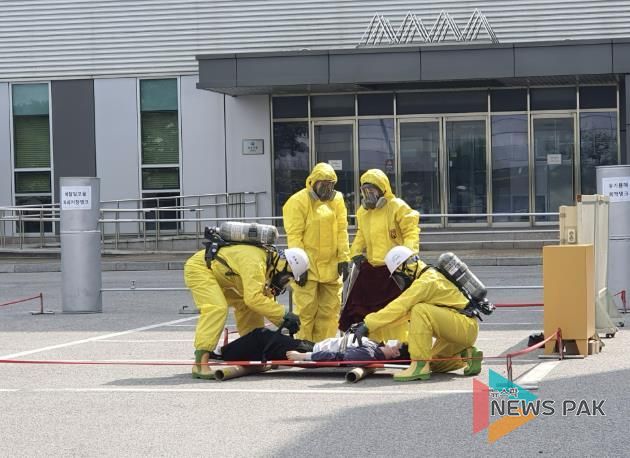 뉴스팍 배상미 기자 | 용인특례시는 30일 처인구 백암면에 있는 제일약품㈜ 에서 유해화학물질 누출사고 대응 합동훈련을 진행했다.