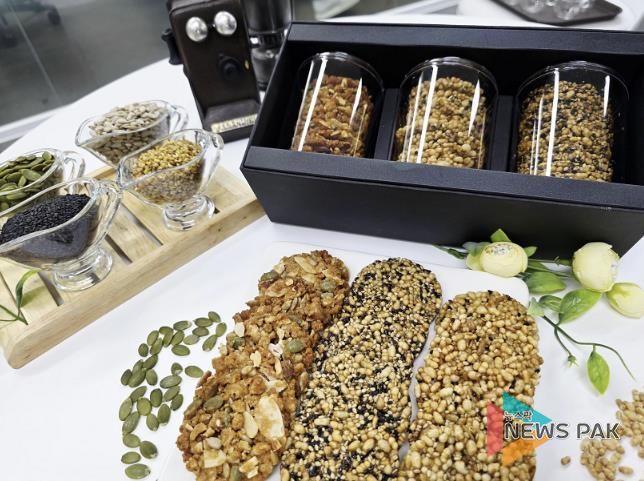선물세트는 군포시니어클럽 소속 어르신들이 손수 만든 건강 제품으로 눈의 피로를 덜어주는 찜질팩과 고소한 맛의 수제 간식으로 구성되어 있다. 특히 제품 하나하나에 정성과 위생, 안전을 담아 소비자들이 안심하고 구매할 수 있도록 제작됐다.