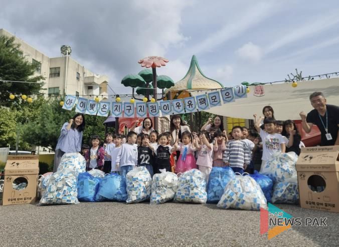 뉴스팍 배상미 기자 | 수원시 장안구 연무동에 소재한 아이빛어린이집은 지난 30일, 원생들이 직접 모은 우유팩을 모아 연무동 행정복지센터에 전달했다.