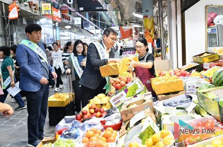 뉴스팍 배상미 기자 | 수원특례시 영통구는 지난 9월 30일, 다가오는 2025년 추석 명절을 앞두고 영통구 유일의 전통시장인 구매탄시장을 방문해‘전통시장 장보기 행사 및 물가안정 캠페인’을 진행했다.