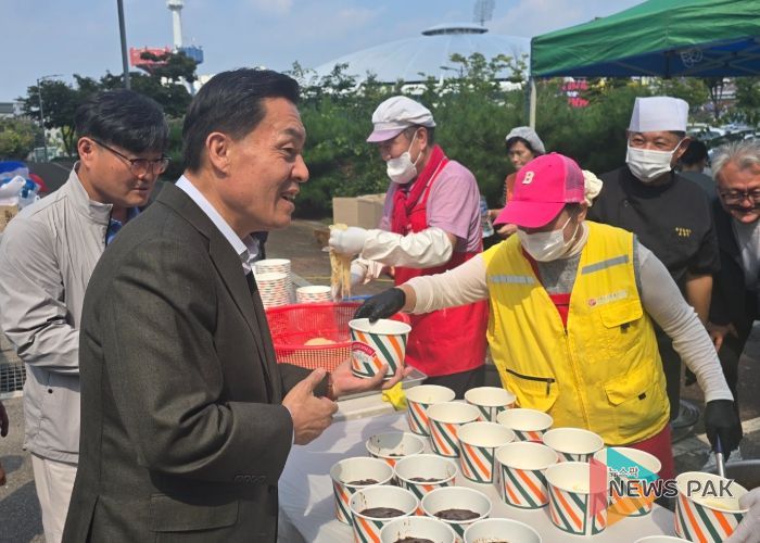1일 수원종합운동장에서는 코로나19로 중단됐던 밥차 행사가 5년 만에 다시 열려 택시·플랫폼 노동자 등 200여 명에게 따뜻한 짜장면과 탕수육이 제공됐다.