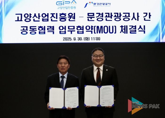 뉴스팍 배상미 기자 | 고양산업진흥원이 지난 30일, 고양아쿠아특수촬영스튜디오에서 문경관광공사와 공동협력 업무협약 MOU를 체결했다.