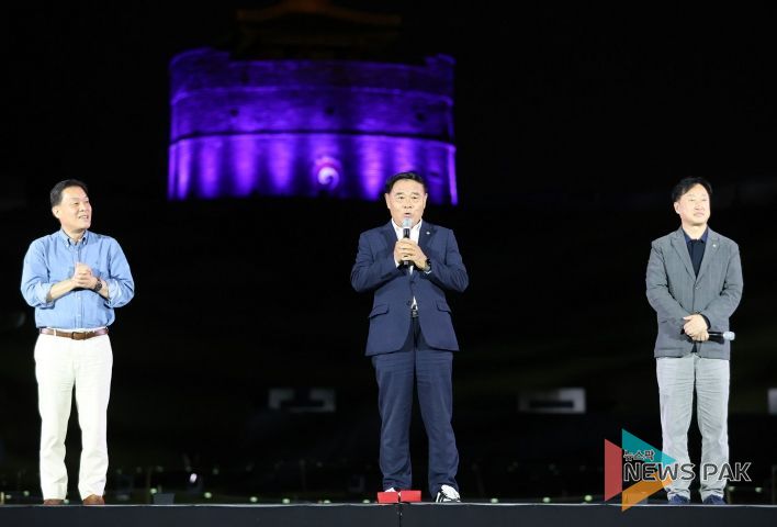 뉴스팍 배상미 기자 | 수원특례시의회는 지난 10월 4일 연무대 특설무대에서 열린 제62회 수원화성문화제 주제공연 ‘수원판타지-야조’를 시민들과 함께 관람했다.