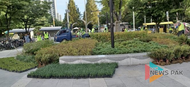 이에 일산서구는 광장 원형화단 내 느티나무, 눈향나무 등과 함께, 그늘과 토양 적응력이 높은 영산홍·맥문동·꽃잔디 등 총 4,350본의 야생화를 새로 식재했다.