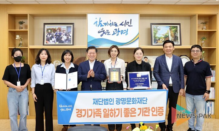 뉴스팍 배상미 기자 | (재)광명문화재단은 가족친화적인 조직문화 조성과 복지 제도 운영의 우수성을 인정받아, 경기도로부터 ‘2025년 가족친화 일하기 좋은 기업’ 인증을 받았다.