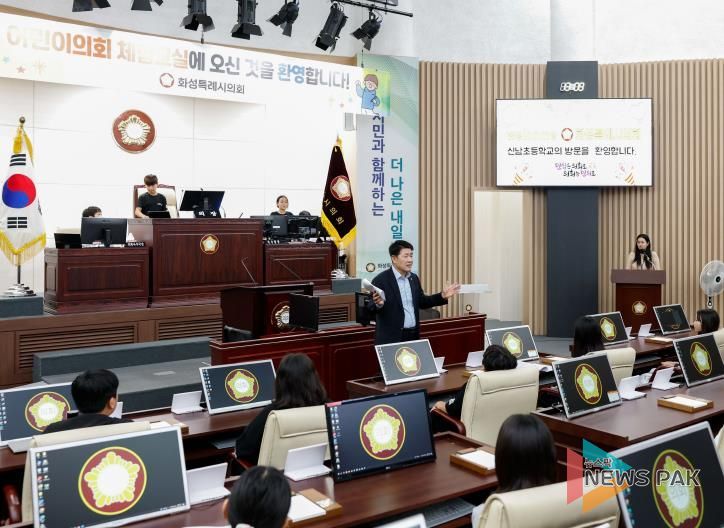 뉴스팍 류은정 기자 | 화성특례시의회는 13일, 남양읍에 위치한 신남초등학교 학생들을 대상으로 ‘어린이의회 체험 교실’을 운영했다.