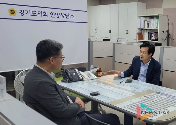 뉴스팍 배상미 기자 | 경기도의회 문형근(더불어민주당, 안양3)의원은 13일 도의회 안양상담소에서 해당 지역구 운곡공원 생활 체육시설 환경개선 관련으로 안양시 체육과 이인수 체육시설팀장과 함께 면담을 진행했다.