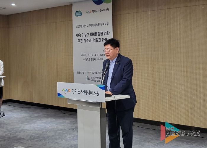 경기도사회서비스원 주최, (사)경기도지역사회보장협의체 주관으로 열린 이번 포럼에서는 ‘지속 가능한 돌봄통합을 위한 우리의 준비: 역할과 과제’를 주제로 2026년 3월 시행 예정인 ‘돌봄통합지원법’에 대응해 경기도 차원의 제도적 준비와 지역 간 협력체계 구축 방향을 논의했다.