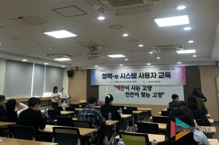 뉴스팍 배상미 기자 | 고양특례시는 지난 16일 대회의실에서 직원을 대상으로‘청백-e 시스템 사용자 교육’을 실시했다고 밝혔다.