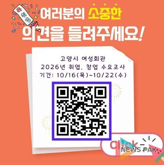 뉴스팍 배상미 기자 | 고양특례시 여성회관은 시민의 직무 역량 강화와 성공적인 취·창업 연계를 지원하기 위해 ‘2026년 취·창업 특강 수요조사’를 실시한다.