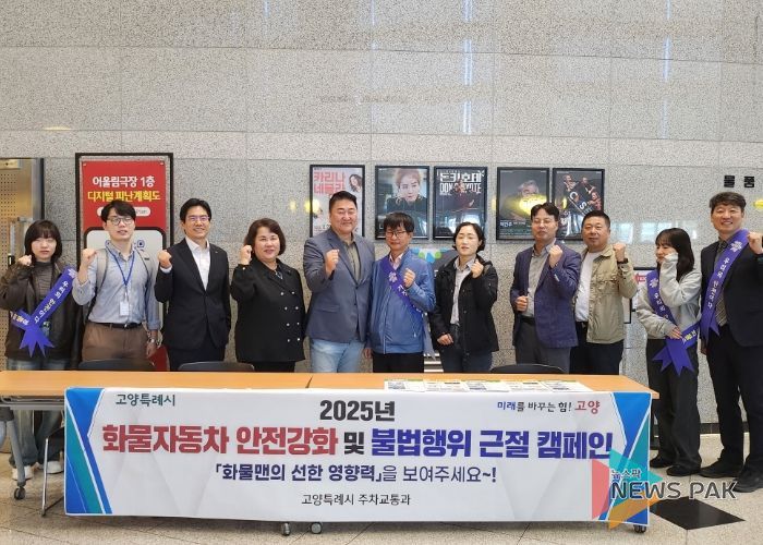 뉴스팍 배상미 기자 | 고양특례시는 안전하고 건전한 화물운송 문화 조성을 위해 지난 14일부터 3일간 쿠팡 물류센터 및 화물운수종사자 보수교육 현장에서 화물자동차‘안전사고 예방’및‘불법행위 근절’캠페인을 실시했다고 밝혔다.