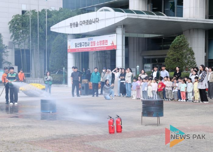 뉴스팍 배상미 기자 | 고양특례시 일산동구는 지난 17일 청사 및 앞 광장에서 장항119안전센터와 ‘2025년 일산동구청 합동 소방훈련’을 실시했다.