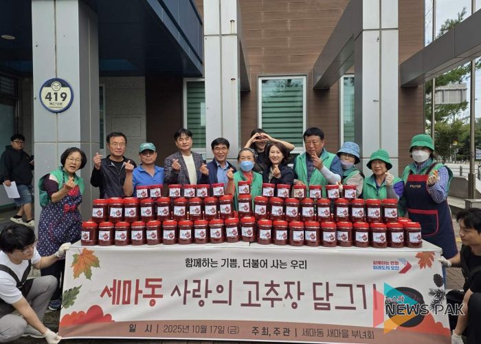 신정순 세마동 새마을부녀회장은 “회원들이 정성을 담아 만든 고추장이 어려운 이웃들에게 작은 힘이 되길 바란다”며, “앞으로도 꾸준한 봉사활동을 통해 따뜻한 지역공동체를 만들어가겠다”고 전했다.