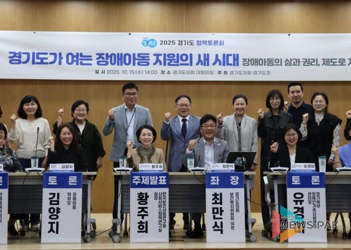 뉴스팍 배상미 기자 | 경기도의회 보건복지위원회 최만식 의원(더불어민주당, 성남2)은 지난 15일 경기도의회 대회의실에서 '경기도 장애아동 복지지원 조례' 제정을 위한 정책토론회를 열고 장애아동 지원체계를 뒷받침할 제도적 기반을 논의했다. 이번 토론회는 ‘경기도가 여는 장애아동 지원의 새 시대: 장애아동의 삶과 권리, 제도로 지키다’를 주제로 2025년 경기도 정책토론회의 일환으로 진행됐다.