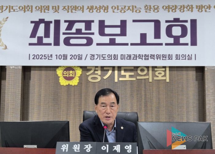 뉴스팍 배상미 기자 | 경기도의회 미래과학협력위원회는 10월 20일, 도의회 위원회 회의실에서 『경기도의회 의원 및 직원의 생성형 인공지능 활용 역량강화 방안 연구』에 대한 최종보고회를 개최했다.
