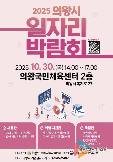 뉴스팍 배상미 기자 | 의왕시는 기업과 구직자가 함께 하는 채용의 장(場)인 ‘2025년 하반기 의왕시 일자리박람회’를 10월 30일 오후 2시부터 5시까지 의왕국민체육센터에서 개최한다고 밝혔다.