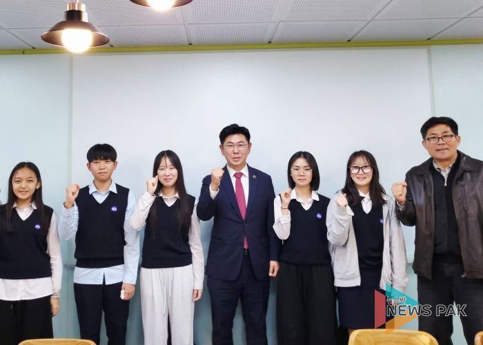 뉴스팍 배상미 기자 | 경기도의회 미래과학협력위원회 윤충식 의원(국민의힘, 포천1)은 지난 21일 포천시 갈월중학교를 방문해 교육현장을 살피며 학생들과 소통하는 시간을 가졌다.