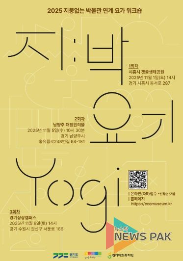 뉴스팍 배상미 기자 | 경기도와 경기문화재단은 경기도의 지역유산을 요가 동작과 해설로 새롭게 체험하는 ‘지붕없는 박물관 연계 요가 워크숍 〈지:박-요기(Yogi)〉’의 참여자를 모집한다고 밝혔다. 이번 프로그램은 ‘지붕없는 박물관(경기에코뮤지엄)’ 사업의 일환으로, 지역의 문화와 생태적 자원을 몸의 움직임으로 느끼는 참여형 워크숍이다.