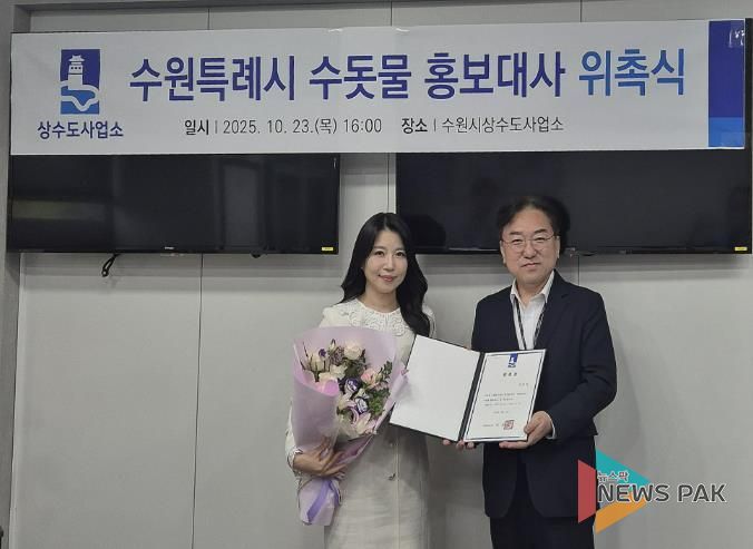 뉴스팍 배상미 기자 | 수원특례시는 리포터 이단비를 ‘수돗물 홍보대사’로 위촉했다. 위촉식은 23일 수원시 상수도사업소 소장실에서 열렸다.