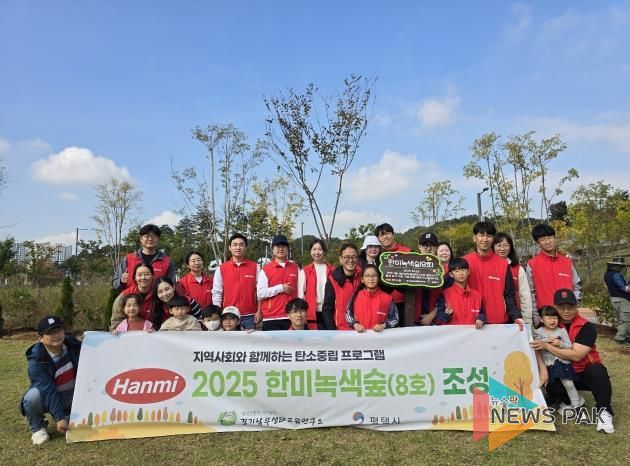 뉴스팍 이소율 기자 | 평택시와 한미그룹은 지난 25일 함박산 중앙공원에서 한미그룹 임직원과 가족 등 50여 명이 참여한 가운데 ‘한미녹색숲(8호)’조성 행사를 개최했다.