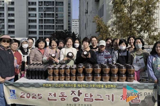 뉴스팍 배상미 기자 | 수원시 장안구 조원2동 주민자치회는 지난 10월 31일 조원2동 행정복지센터 옥상에서 ‘전통 장 담그기 체험’의 마지막 과정인 ‘장 나누기’ 활동을 진행했다.