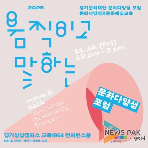 뉴스팍 배상미 기자 | 다가오는 11월 14일, 경기문화재단(대표이사 유정주)은 문화다양성 가치의 확산과 실천을 위한 ‘움직이고 말하는 문화다양성 포럼’을 수원 경기상상캠퍼스에서 개최한다.