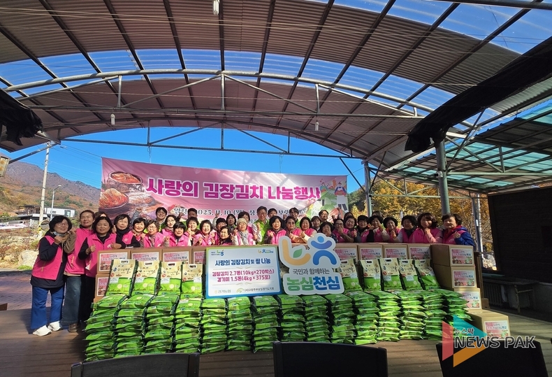 뉴스팍 배상미 기자 | 농협중앙회 경기본부(본부장 엄범식)와 (사)고향주부모임경기도지회(회장 정우숙)는 10일 양평군 보릿고개마을에서 ‘사랑의 김장김치 나눔 행사 및 쌀 소비촉진 캠페인’ 을 개최했다.