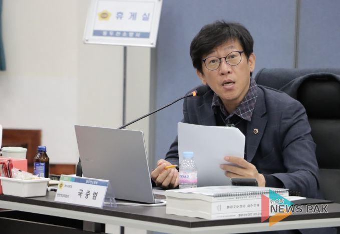 뉴스팍 배상미 기자 | 경기도의회 안전행정위원회 국중범 의원(더불어민주당, 성남4)은 11일 동두천소방서에서 실시된 2025년 경기도의회 행정사무감사에서 학교 내 전기차 충전소 설치에 대한 안전관리 대책 마련을 강력히 촉구했다.