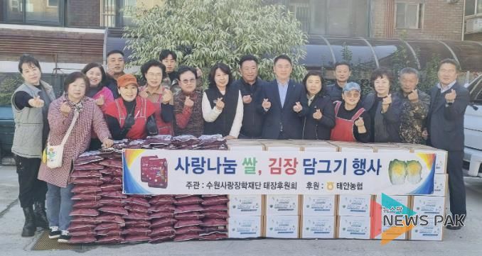 뉴스팍 배상미 기자 | 수원시 영통구 망포1동행정복지센터는 지난 11일, 수원사랑장학재단 태장후원회와 태안농협에서 김장김치 50박스와 백미4kg 80포를 기탁했다고 밝혔다.