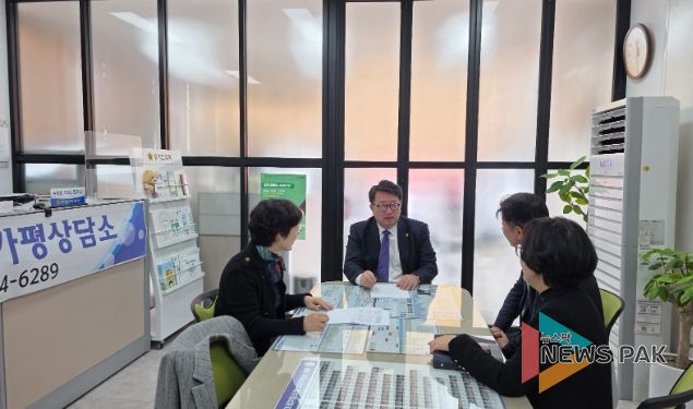 뉴스팍 배상미 기자 | 경기도의회 교육기획위원회 소속 임광현 의원(국민의힘, 가평)은 13일 경기도의회 가평상담소에서 가평군청 김미성 부군수, 신성철 기획예산담당관과 함께 가평군 관광특구 및 평화경제특구 추진 방안에 대해 논의했다.