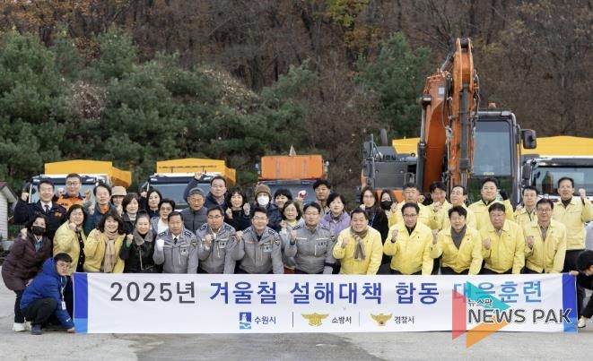 뉴스팍 배상미 기자 | 수원특례시는 겨울철 강설에 대비해 4개 구청, 유관기관, 민간단체와 함께 설해 대책 합동 현장대응 훈련을 하고, 제설 대응·협력 체계를 점검했다.