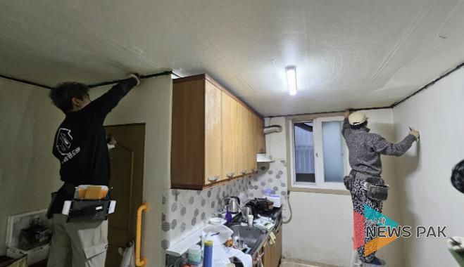 뉴스팍 배상미 기자 | 시흥시는 지난 11월 18일 시흥시북부중장년센터가 양성한 ‘도배기능사’ 과정 수료생(7명)과 관계자 등 총 10명이 대야동 취약계층 2가구를 대상으로 도배 봉사활동을 진행했다.