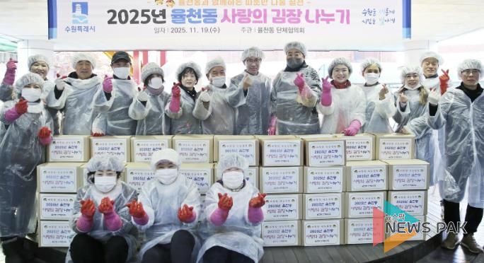 뉴스팍 배상미 기자 | 수원시 장안구 율천동은 지난 19일 관내 취약계층 지원을 위한 ‘2025년 사랑의 김장 김치 나누기’ 행사를 개최했다.