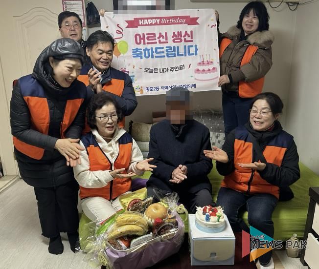 뉴스팍 배상미 기자 | 지난 19일, 수원시 영통구 망포2동 지역사회보장협의체가 특화사업의 일환으로 홀로 생활하는 어르신의 가정을 방문하여 생신을 맞은 어르신께 축하 인사를 전하고 따뜻한 관심을 전달하는‘함께해요! 어르신 생신잔치!’사업을 진행했다.