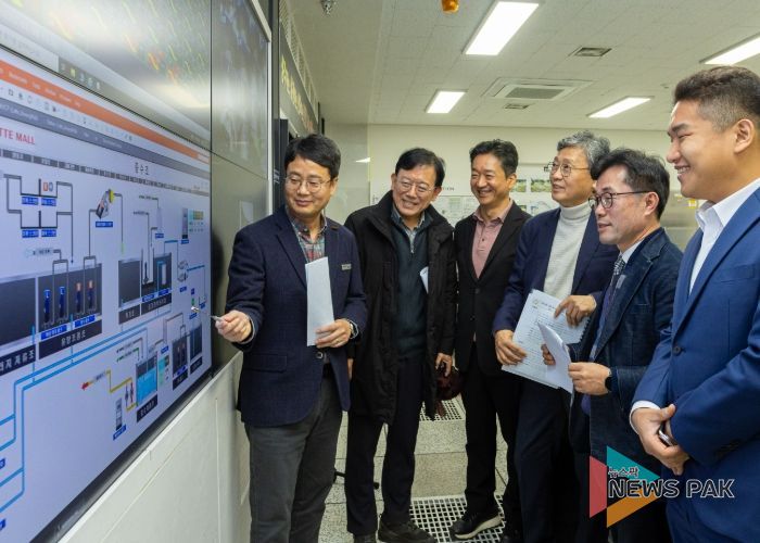 뉴스팍 배상미 기자 | 의왕시의회 김태흥 부의장과 한채훈 의원이 ‘의왕시 물 재이용 확대방안 정책토론회’를 앞두고 토론자인 이호식 국립한국교통대 교수와 박명균 경기도물산업협회 자문위원과 함께 ‘롯데프리미엄아울렛 의왕점’의 물 재이용시설을 현장 방문했다고 밝혔다.