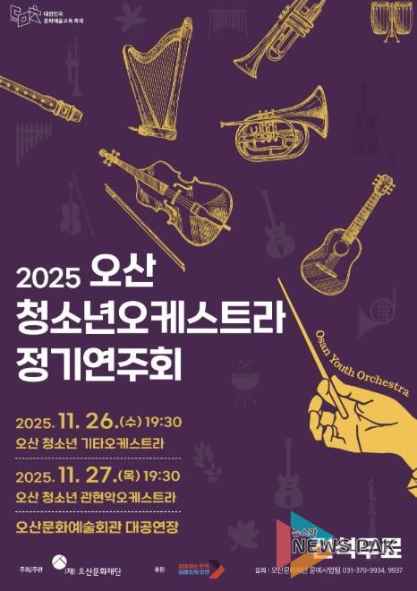 뉴스팍 이소율 기자 | 오산문화재단이 주최하고 오산시가 후원하는 ‘2025 오산 청소년 오케스트라 정기연주회’가 오는 11월 26일부터 27일까지 오산문화예술회관 대공연장에서 이틀간 개최된다. 공연은 전석 무료로 시민 누구나 관람할 수 있다.