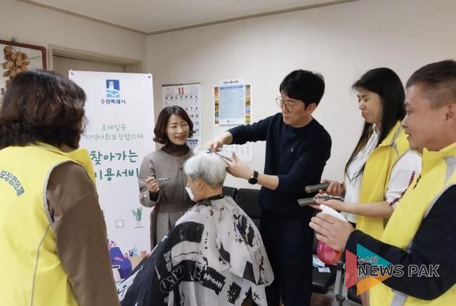 뉴스팍 배상미 기자 | 수원시 권선구 호매실동 지역사회보장협의체는 지난 25일, 헤어스타일N과 함께 찾아가는 이미용 서비스를 진행했다.