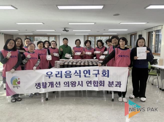 뉴스팍 배상미 기자 | 의왕시는 생활개선의왕시 연합회 분과인 우리음식연구회에서 12월 4일 회원들이 직접 만든 반찬 100세트를 푸드뱅크를 통해 지역 내 취약계층에 전달하며 나눔을 실천했다고 밝혔다.