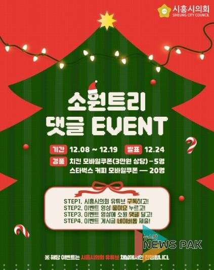 뉴스팍 배상미 기자 | 경기 시흥시의회가 다가오는 성탄절을 맞아 시민들과 따뜻한 마음을 나누고 소통을 강화하기 위해 ‘소원트리 댓글 이벤트’를 진행한다.
